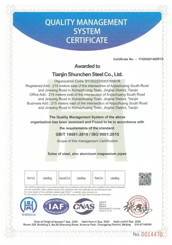 تتمتع الإدارة العليا لشركة Shunchen بأكثر من 20 عامًا من الخبرة والتكنولوجيا في إنتاج الجلفنة بالغمس الساخن.